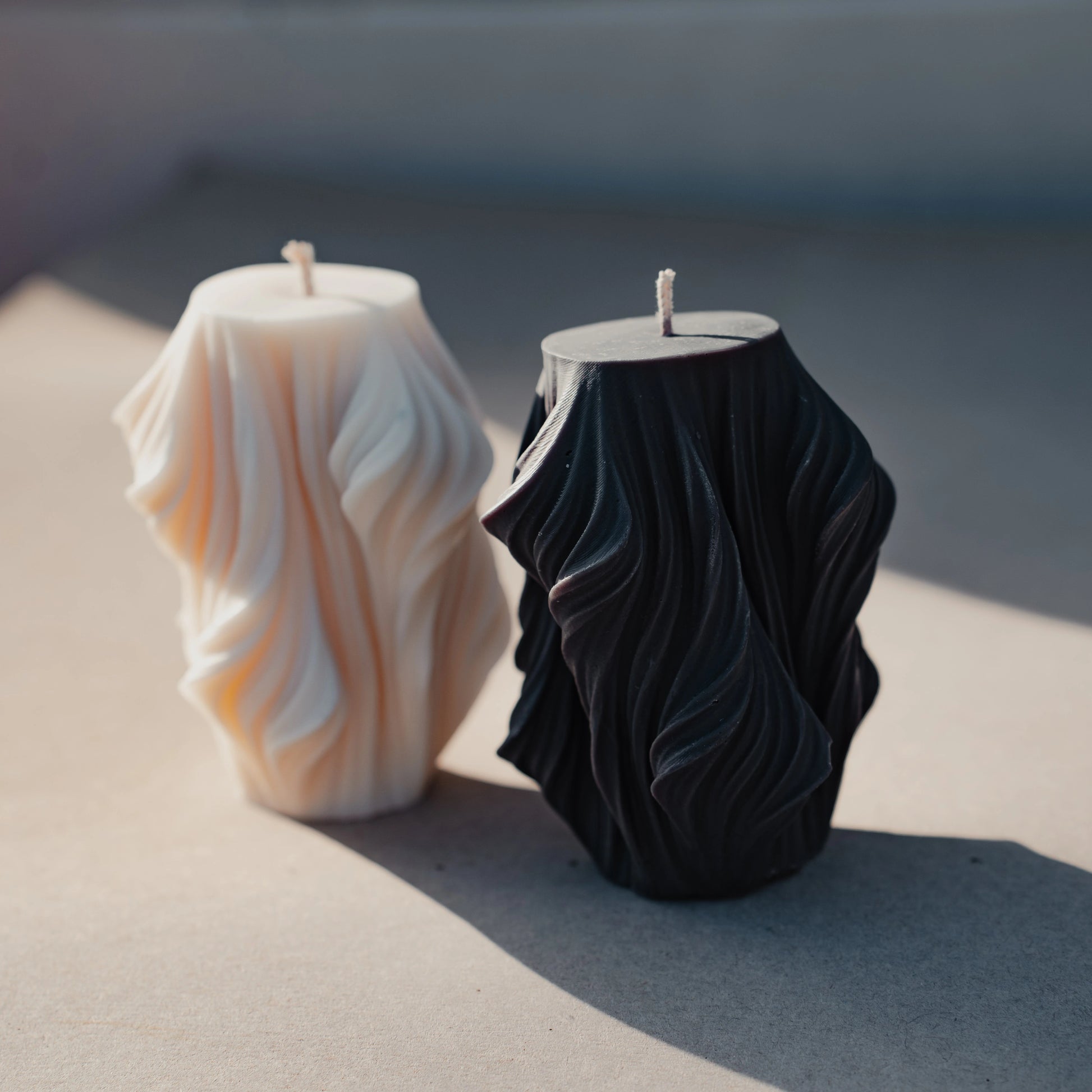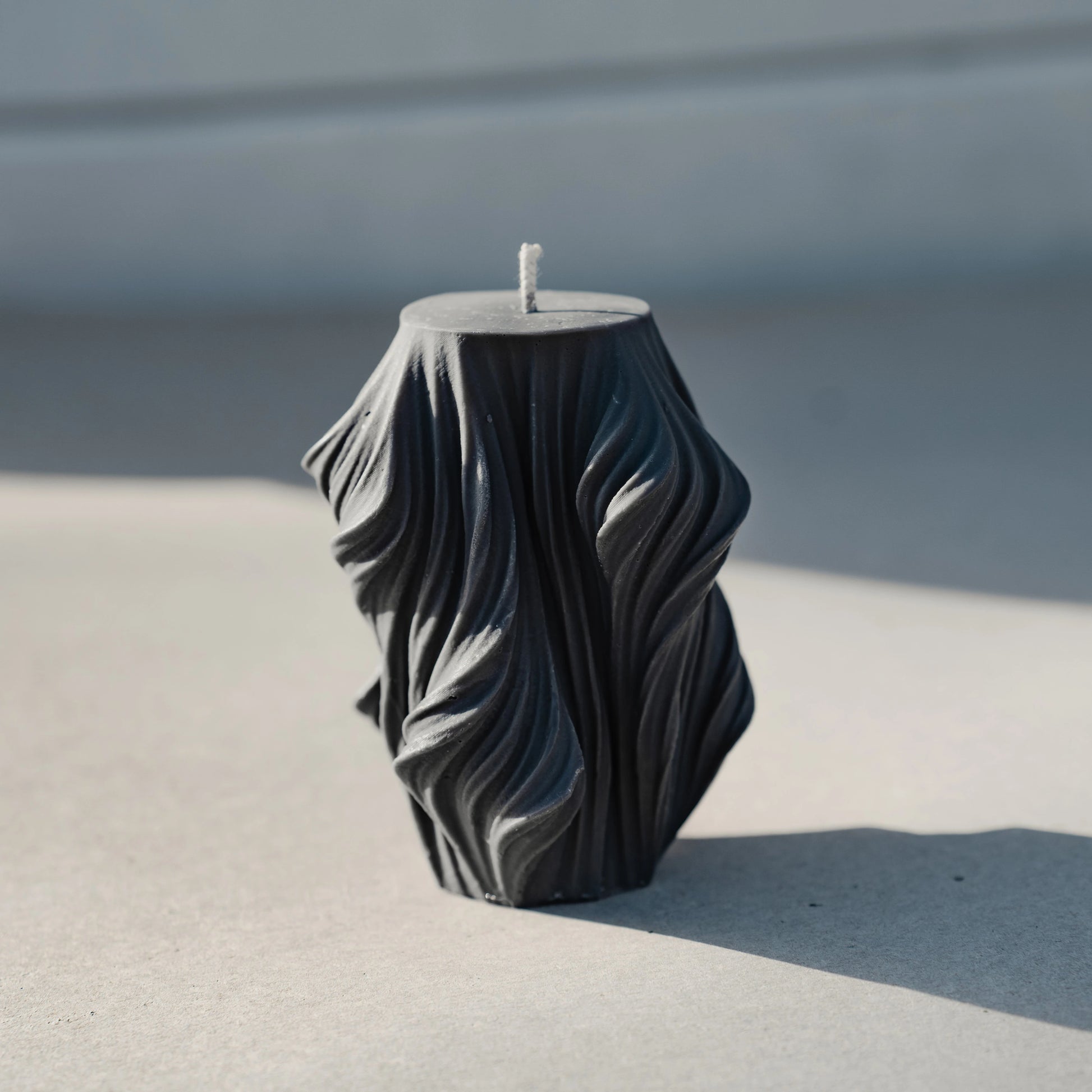 Hand-poured in the Netherlands from a sustainable, vegan and premium soy wax, this sculptural candle brings movement, depth, and texture to any modern interior. The dual tones of soft white and charcoal gray make it a timeless statement piece for minimalist spaces, neutral homes, and design lovers.